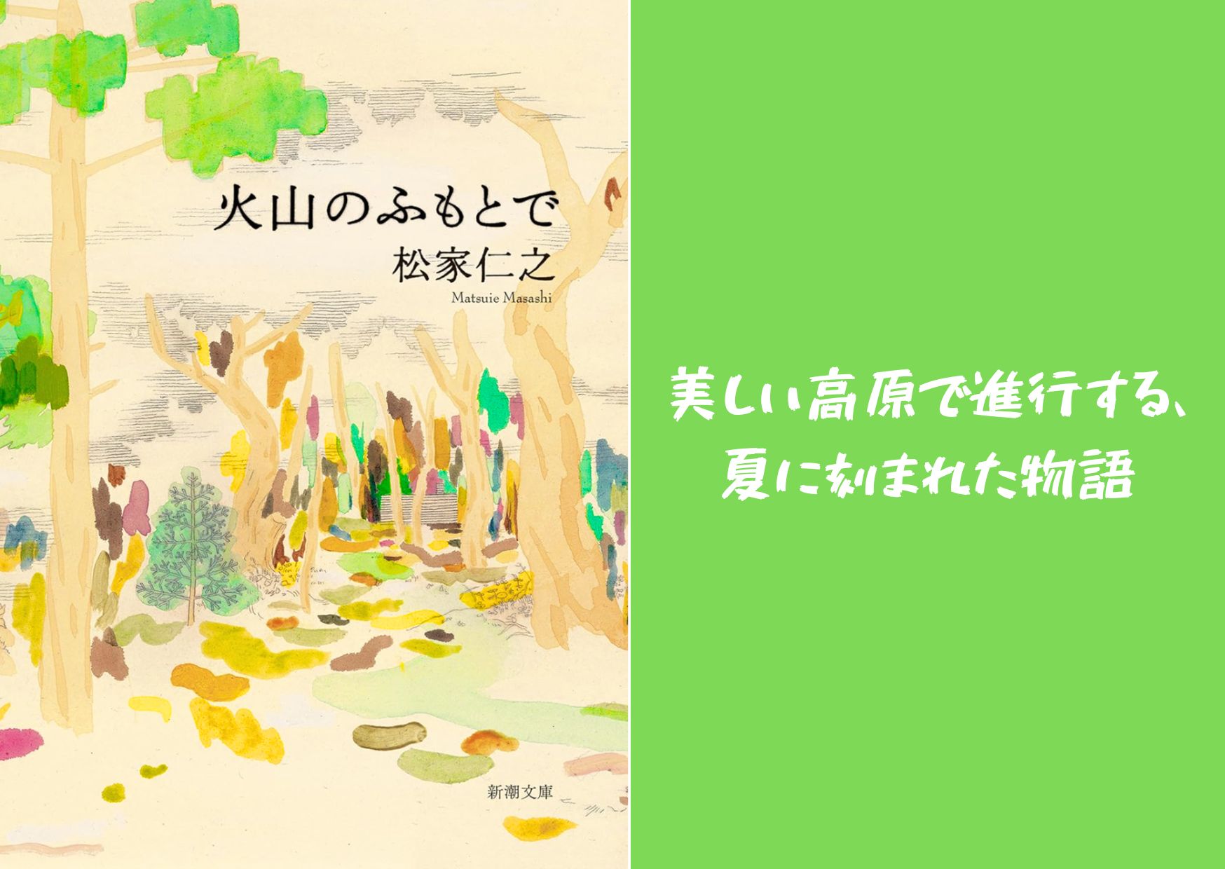 1982年、浅間山が10年ぶりに噴火したふもとの山荘。若き建築家「ぼく」が入所した村井設計事務所は、夏のあいだだけ軽井沢の別荘地に事務所機能を移転するのが慣わしだった。所長は大戦前のアメリカで名匠ライトに師事した寡黙な老建築家。秋に控えた「国立現代図書館」設計コンペに向けて佳境を迎える仕事、そして美しい風景と、洗練されている都会で密かに進む仕事や人間関係、そして静かな恋――火山のふもとで、夏に刻まれた物語。